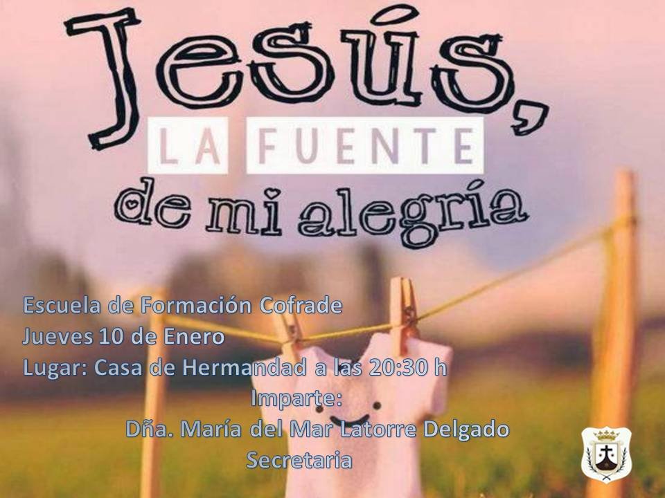 El próximo Jueves 10 de Enero a las 20:30 h en la Casa de Hermandad, tendrá lugar la segunda charla de formación del presente curso cofrade. Bajo el título «Jesús, La Fuente de mi Alegría» e impartida por María del Mar Latorre Delgado, secretaria de la Cofradía, constituye una nueva oportunidad para seguir profundizando en nuestra formación como cristianos y cofrades.